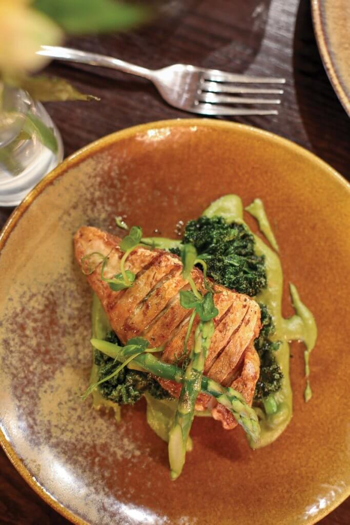 There’s a natural sense of ease here – a place where muddy boots are welcome, conversations flow, and every detail feels considered yet relaxed. The botanically inspired restaurant adds a fresh, vibrant feel, complementing the traditional bar area and creating a setting that is as uplifting as it is welcoming. And as the seasons begin to turn, so too does the focus… towards a menu that celebrates all the colour, flavour, and freshness of spring.
